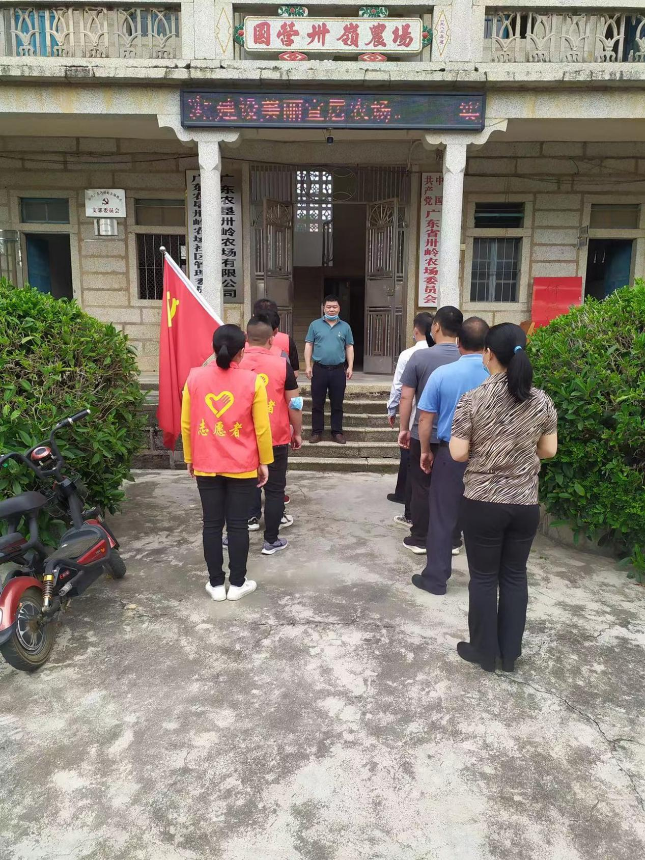 卅嶺農(nóng)場組織黨員疫情防控志愿隊到新興小區(qū)、新旺小區(qū)開展“擎旗筑堡壘、亮徽當(dāng)先鋒”活動,發(fā)放《致卅嶺農(nóng)場全場居民一封信》150張,檢查登記來往人員的粵康碼,入戶走訪群眾疫苗接種情況83戶,充分發(fā)揮戰(zhàn)斗堡壘和先鋒模范作用。