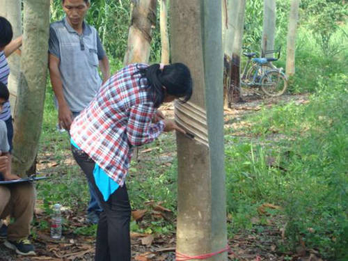 卅嶺農(nóng)場(chǎng)割膠技術(shù)培訓(xùn)班自4月28日開班以來,按照割膠技術(shù)規(guī)程,在輔導(dǎo)員的精心指導(dǎo)下,學(xué)員們虛心學(xué)習(xí),勤學(xué)苦練。經(jīng)過一個(gè)多月的培訓(xùn),學(xué)員們掌握了磨刀、割膠技術(shù)。